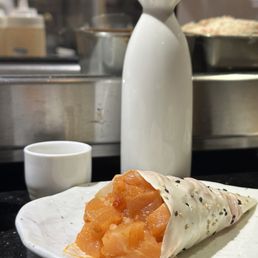 The owner is absolutely lovely. So cute and has a beautiful soul. Popped in late for the happy hour that I didn't know they were having and blew about $100 on all my food and drinks and it was well worth it. The robata's are delicious. I had the pork belly, beef with crunchy garlic and chicken thigh yuzu. I'm so pissed I didn't order more because those were the hit okaaaaayyy. Sergio my sushi chef made the perfect nigiri's and my favorite was the seared halibut. If you sit at the bar make sure he prepares all your food. His love and art for it is captivating. He's the longest sushi chef there. Since I like to spoil myself I got the sugar daddy roll. All I can say is wow the crab combination and shrimp tempura was delightful. Perfect blend of seafood combo. Karage my favorite so had that in the side with an additional favorite bake crab hand roll. And to wash it down large Sapporo and hot sake. My late night sushi dinner hit the spot. I'll be back probably once a week. To try so many other things they have on the menu. Thank you to the family here that made my experience worth the while. I was having a horrible day but the food and service here made it all go away for the time being.